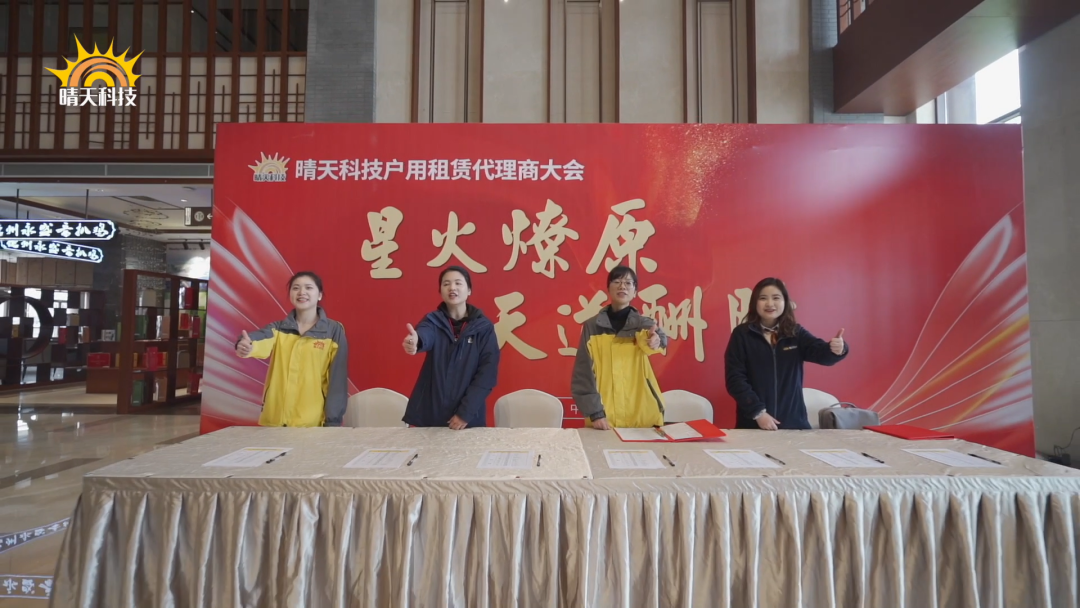 會(huì)議開始,由晴天科技副總裁曹飛翔作戶用租賃未來發(fā)展報(bào)告。曹總首先對所有代理商伙伴一直以來的鼎力支持表示衷心感謝,接著對去年合作業(yè)績及市場未來發(fā)展方向做了詳細(xì)介紹。報(bào)告最后曹總表示,晴天科技將始終秉持“服務(wù)客戶、 以人為本、共創(chuàng)共享、專業(yè)高效”的理念,為合作伙伴提供專業(yè)、高效的服務(wù),希望我們共同努力,合作共贏,再創(chuàng)新高!