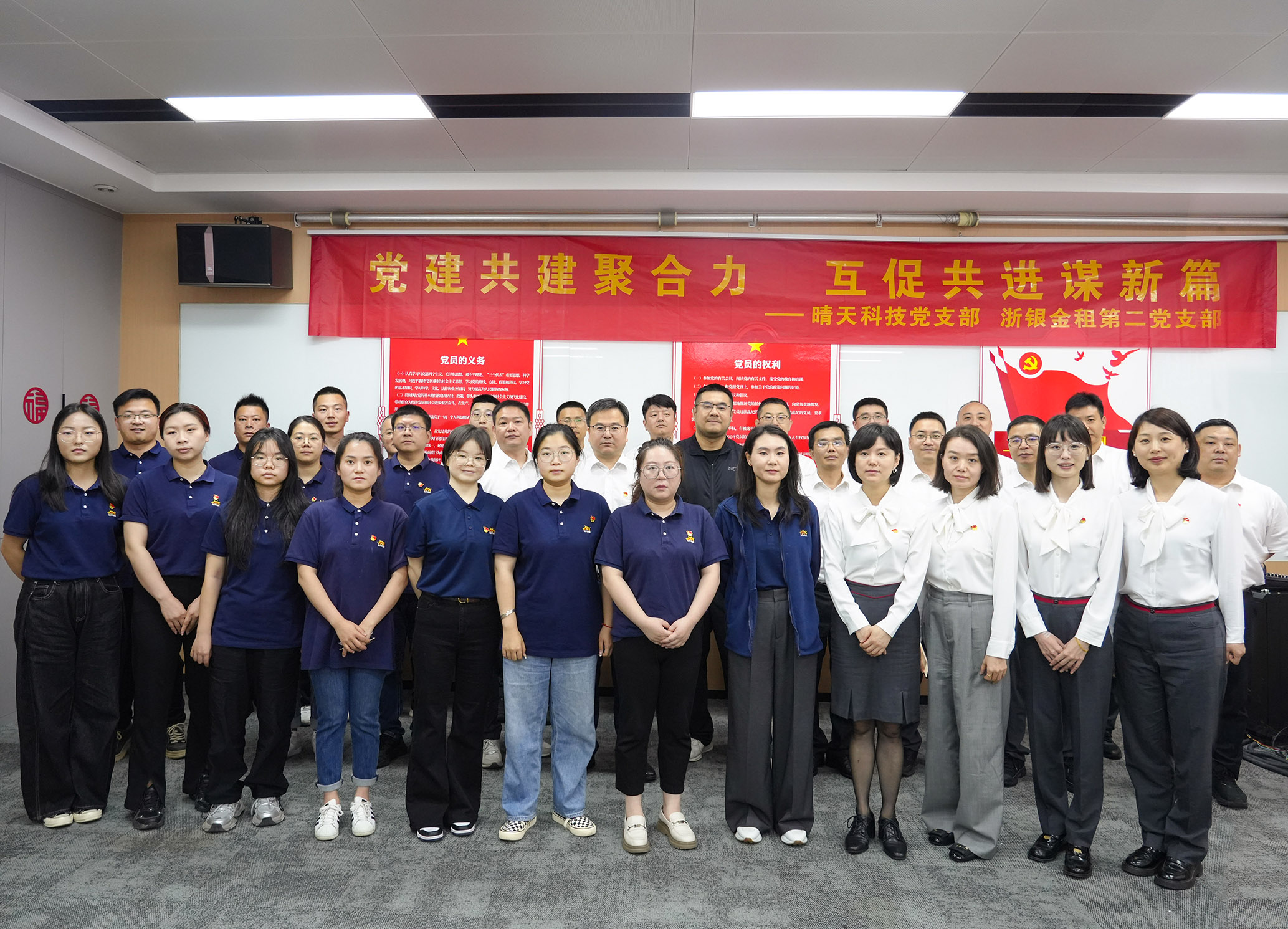 本次共建活動(dòng)標(biāo)志著浙銀金租第二黨支部與晴天科技黨支部在構(gòu)建資源共享、優(yōu)勢(shì)互補(bǔ)、互相促進(jìn)、共同提高的黨建工作新格局方面邁出了新的重要一步,是新形勢(shì)下不斷加強(qiáng)基層黨組織建設(shè),推動(dòng)黨建工作不斷邁上新臺(tái)階的有效途徑。