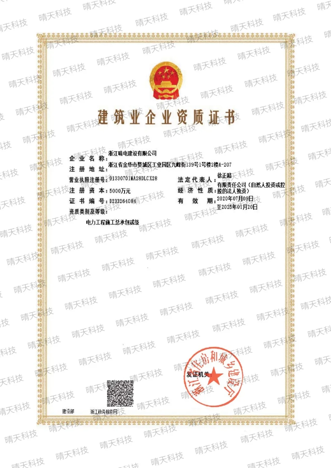 近日,晴天科技旗下全資子公司晴電建設(shè)順利獲得“電力工程施工總承包二級(jí)”資質(zhì)。此項(xiàng)資質(zhì)可承擔(dān)單機(jī)容量20萬千瓦及以下發(fā)電工程、220千伏及以下送電線路和相同電壓等級(jí)變電站工程的施工。